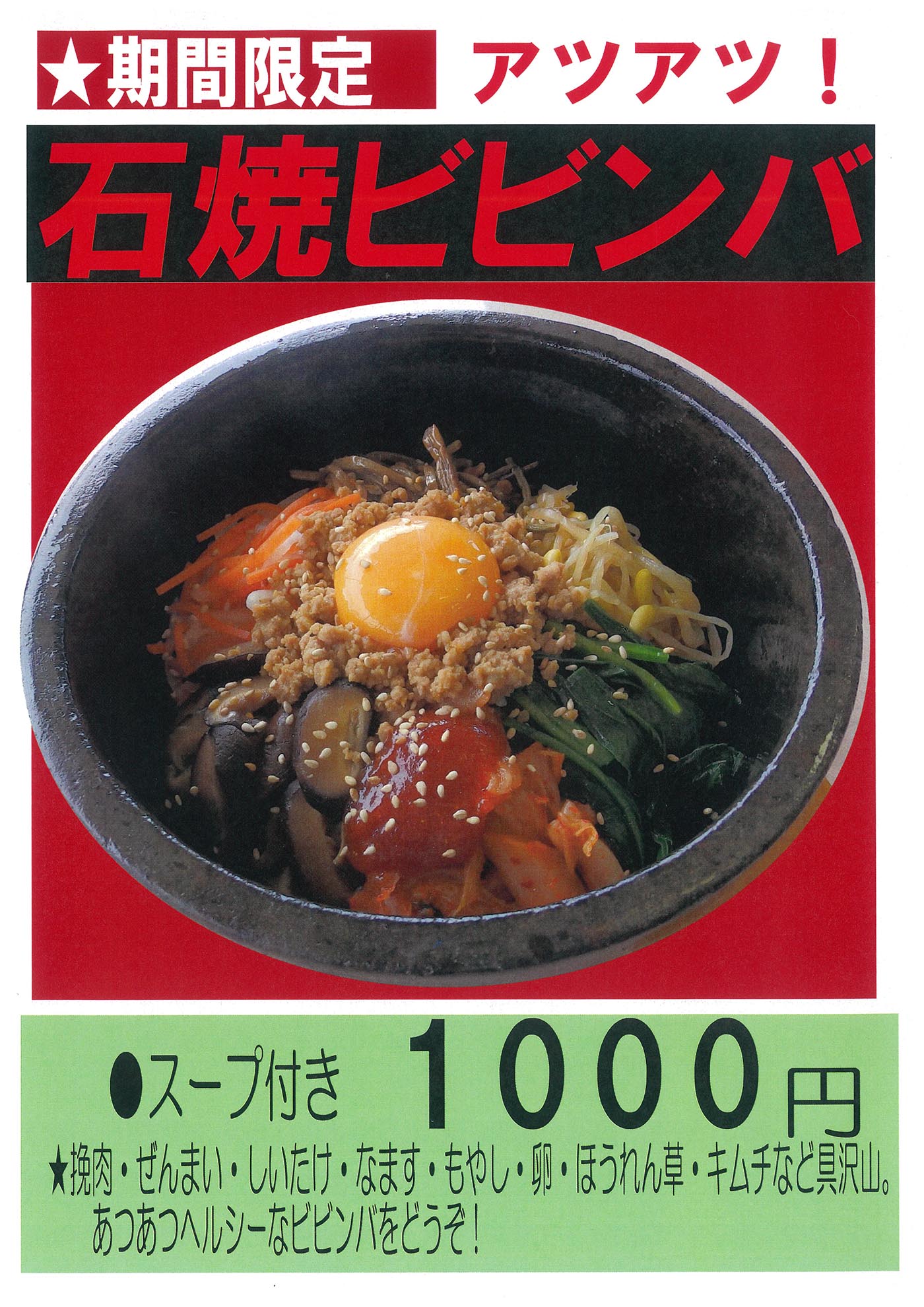 期間限定メニュー「石焼ビビンバ」提供開始!