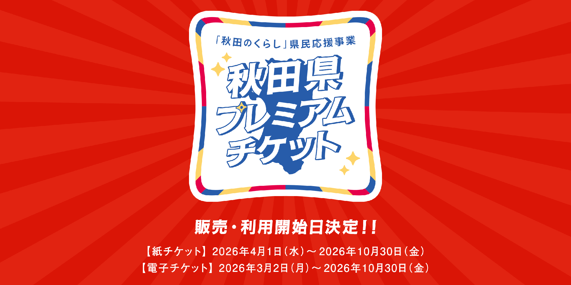 3月2日(月)より「秋田県プレミアムチケット」がお使いいただけます!
